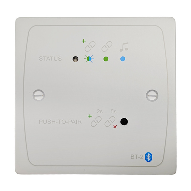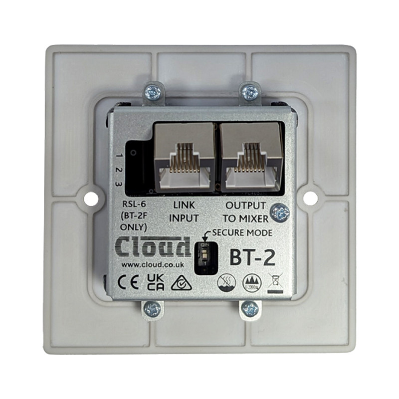 BT-2E is a wall-mounting remote input module for use with Cloud DCM1 Series products fitted with an RJ45 Extension Port. The BT-2 enables compatible portable devices such as laptops, tablets and smartphones to stream audio wirelessly into the installed zone.