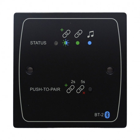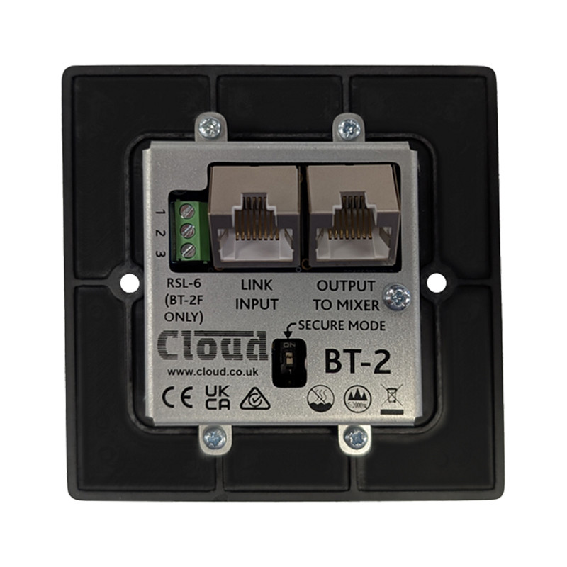 BT-2F is a wall-mounting remote input module for use with Cloud products fitted with an RJ45 Facility Port. The BT-2 enables compatible portable devices such as laptops, tablets and smartphones to stream audio wirelessly into the installed zone.
