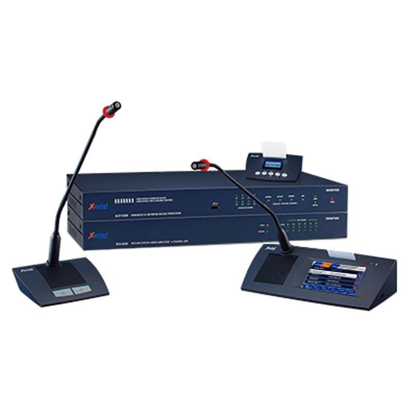 The Senator System is a fully integrated, digital and networked conference system. Using a single DCP1000 processor, it is capable to connect up to 504 CDM delegate units and up to 64 DCA660 digital amplifiers. An entire system can be expanded up to 32 processors via a 64 channels digital audio network. To highest audio quality, each delegate unit can be individually processed with functions including Automatic Gain Control (AGC), 8 Band PEQ, Voice Activated Gate, Hi/Lo Pass Filter, Feedback Suppressor and Gain-Sharing Auto Mixer. The Senator System also incorporates our "industry first" self adjusting "Mix-Minus Auto Calibration" feature, which will automatically calibrate the system, to the perfect "gain before feedback" for the room, and also includes measuring the room acoustics of each and every room.