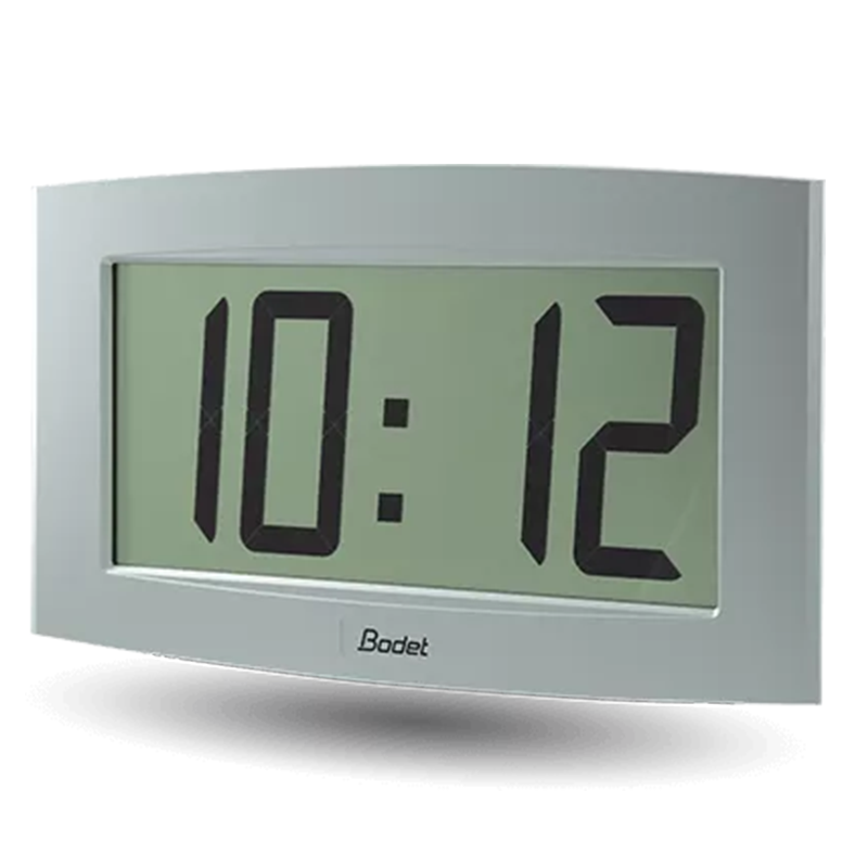 BODET Cristalys 14 Indoor LCD Clock - HMDIT, 14 cm digits. DCF Radio Synchronised - Battery. Alu