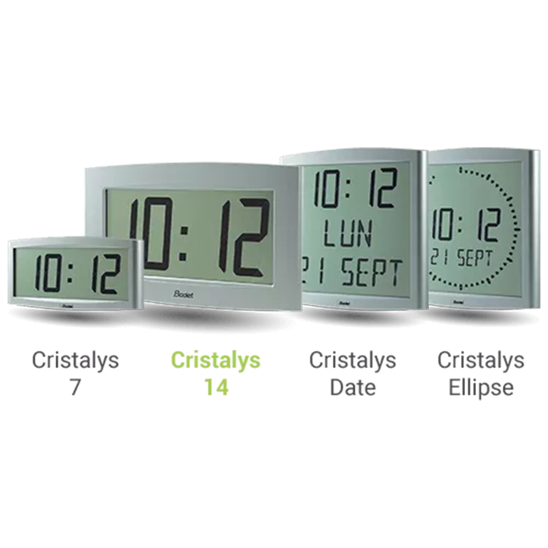 With its uniquely designed and manufactured LCD screen, the Cristalys Ellipse stands out from any other digital clock. Its French manufacture in our Trémentines factories guarantees the quality of its design.