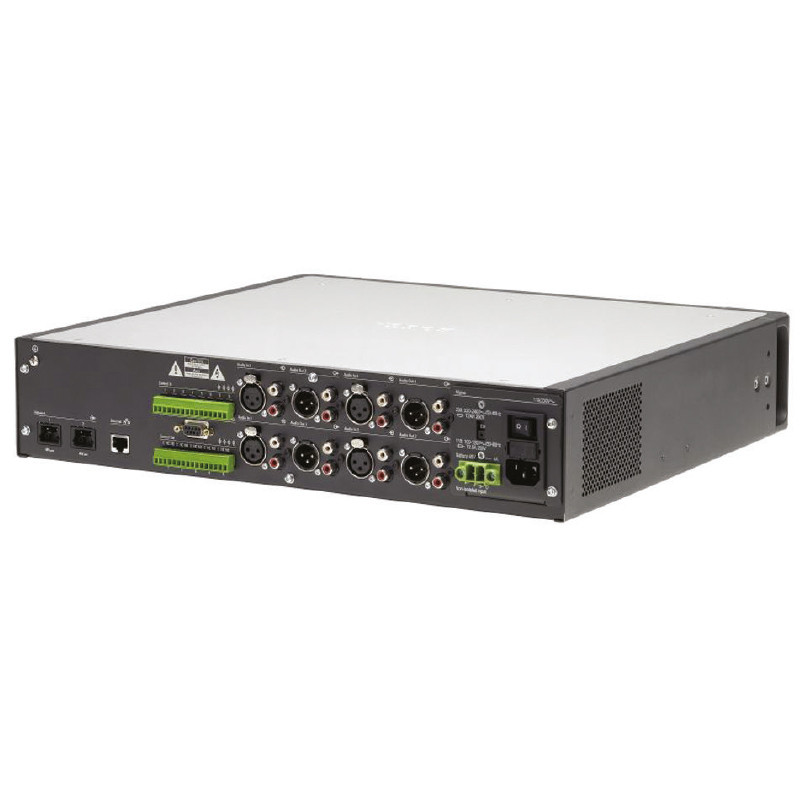 The network control unit is the heart of the Praesideo system. The unit routes up to 28 simultaneous audio channels, delivers power to the system, reports faults, and controls the system. Audio inputs can be announcements from call stations, background music, or local audio. The network control unit can be configured for the most complex public address systems. The configuration can be done comfortably and efficiently via a PC. The PC is only needed for configuration. The controller can operate independently of the PC. However, the controller can use a PC to display information on the system status using the software, supplied with the unit. The unit can be freestanding on a tabletop or mounted in a 19" rack.